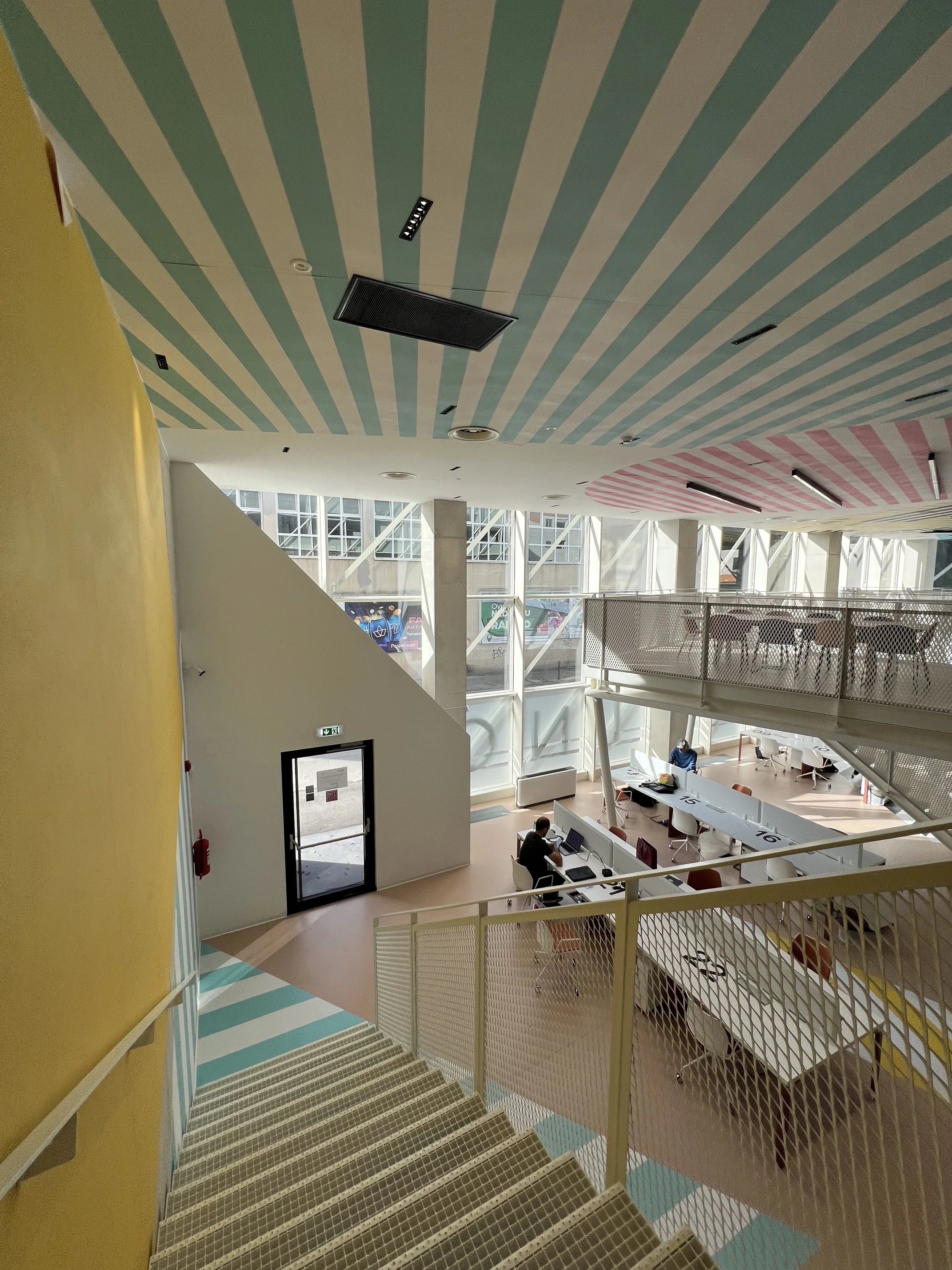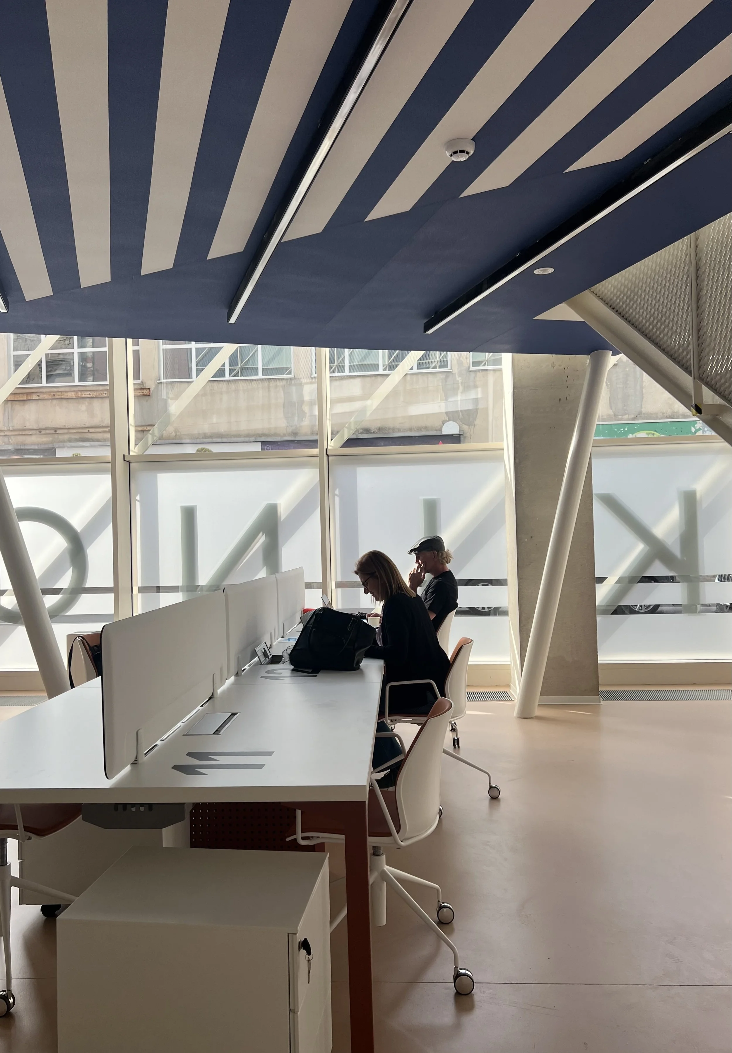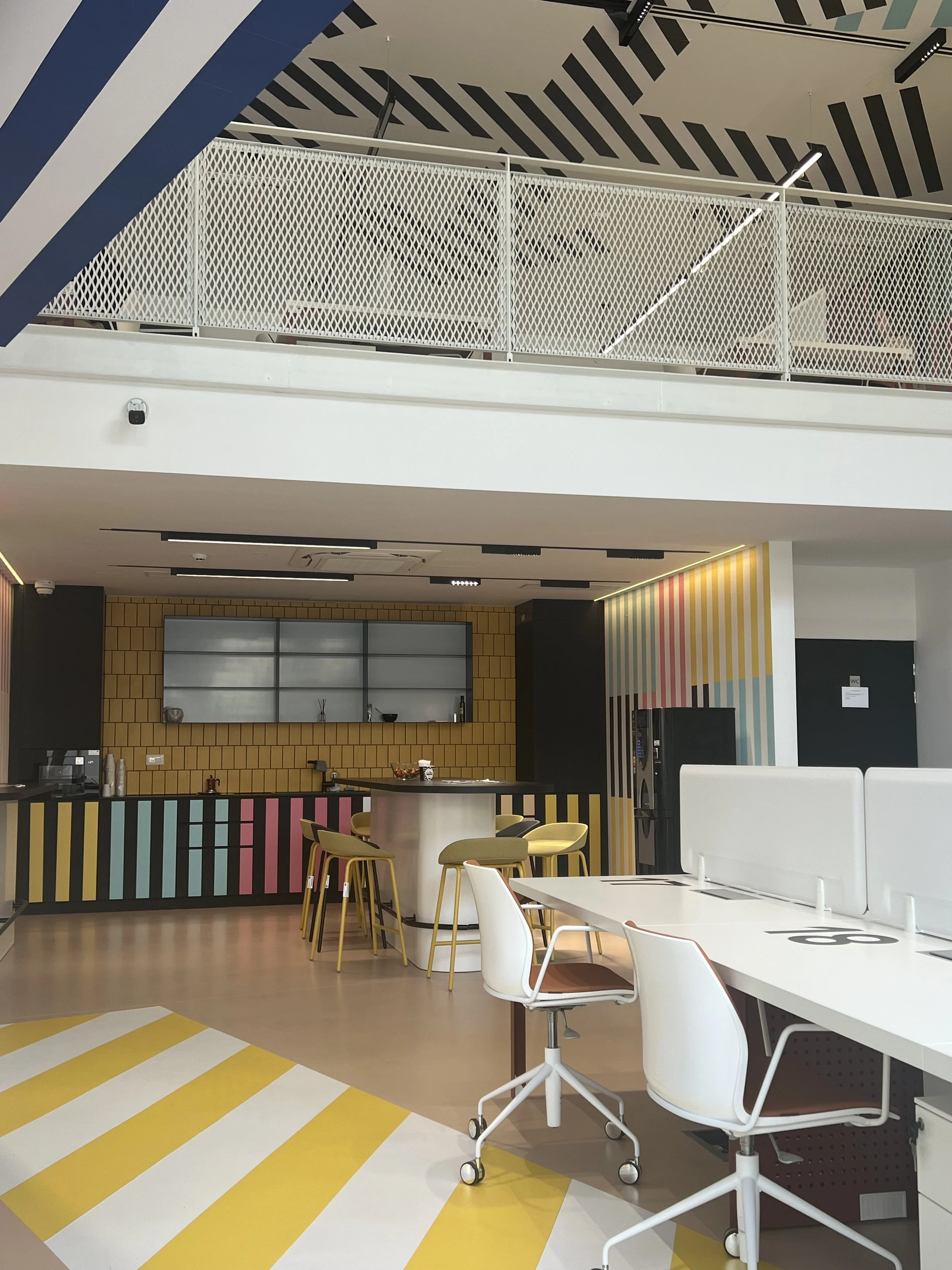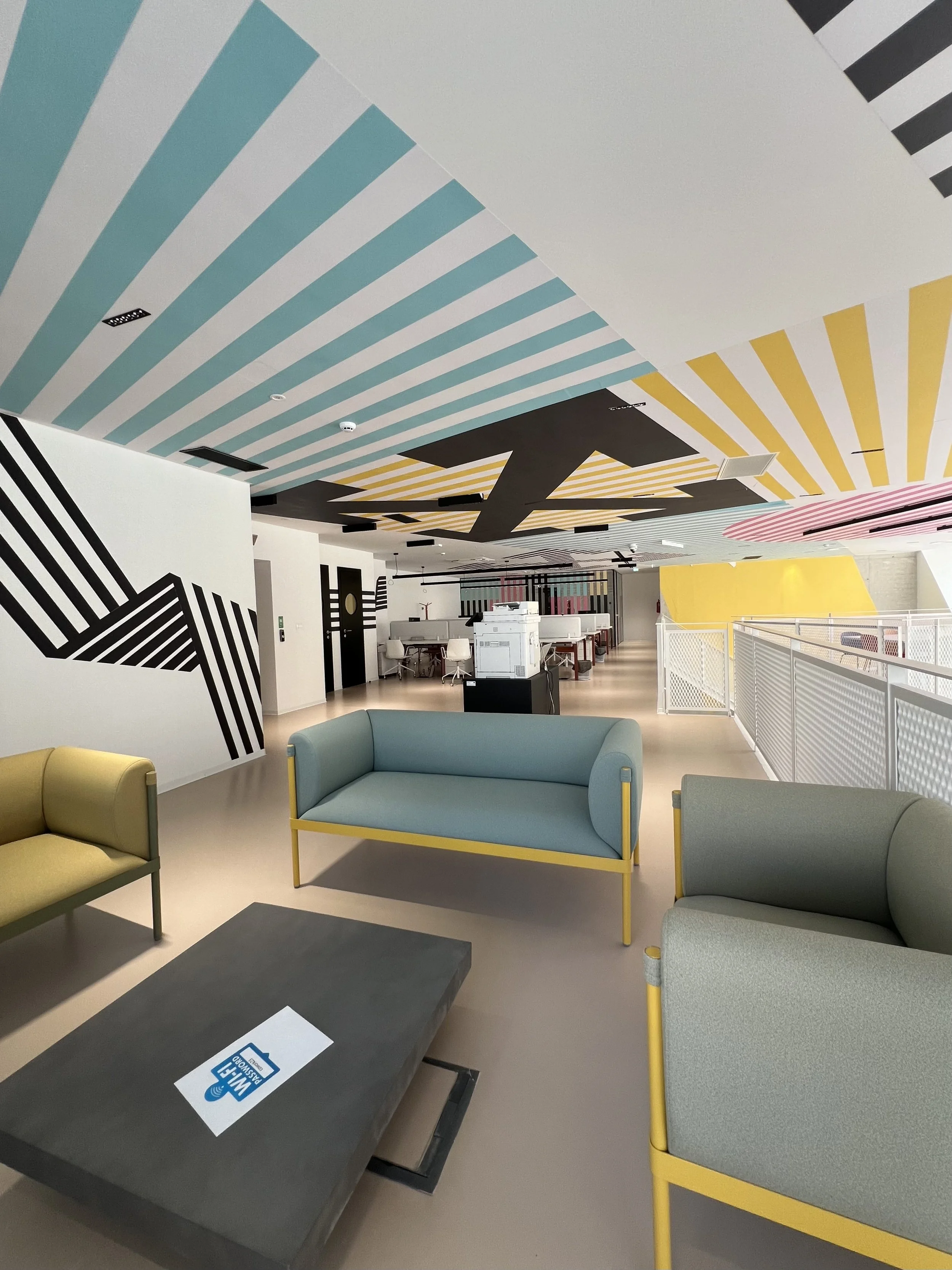 The space itself is spread across four floors and is quite the visual treat. It’s colorful, modern, and very spacious. We jumped right in, and while all the private offices are rented out, there’s still plenty of room for us and freelancers who pop in and out daily. It’s quiet, which is excellent for focusing. There is one thing you start to feel after a while: everything is open space, including the meeting areas. This can be a bit awkward when you’re trying to have a confidential conversation with clients or team members.