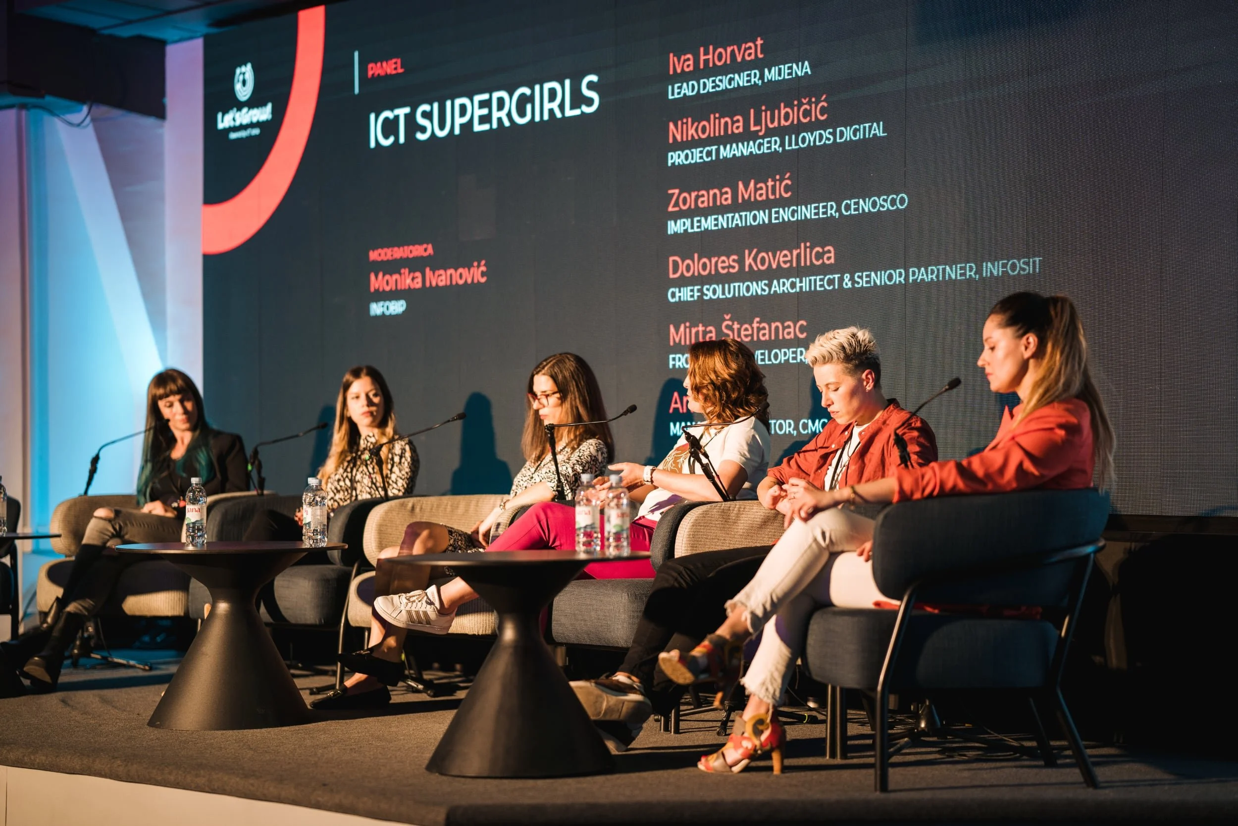Some of the topics of the panel were: "From school desks to unicorns", and "Behind the Screens. "Dispelling myths about work in ICT", "Do we need skills in the world of artificial intelligence?". In the role of ICT Supergirls, we heard the experiences of women in the ICT sector and their experiences in work but also in the search for a private balance. How did their companies support them in this, is it simple to pack a backpack and go to the other side of the world for a year? Mirta Štefanec from Infosit did it. Her company supported her and they succeeded regardless of the time differences. Iva Horvat from Mijena says that the flexible way of working was her salvation at the moment she became a mother.